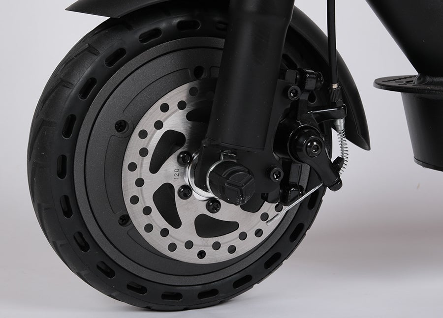 前後のディスクブレーキに加え電子ブレーキを搭載。確かな制動力を発揮。