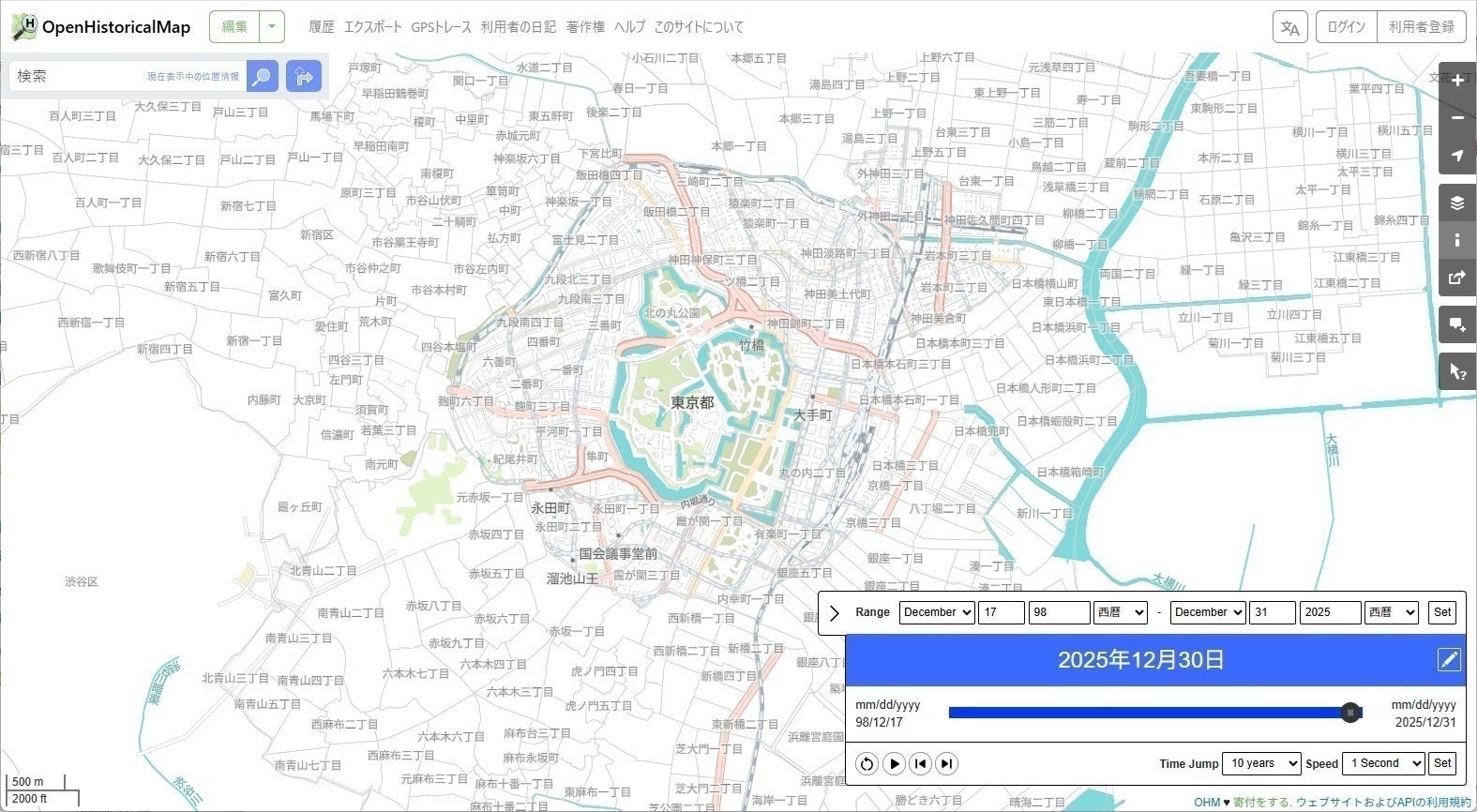 では、連続した時間変化をシームレスに探索できる歴史地図を公開します。