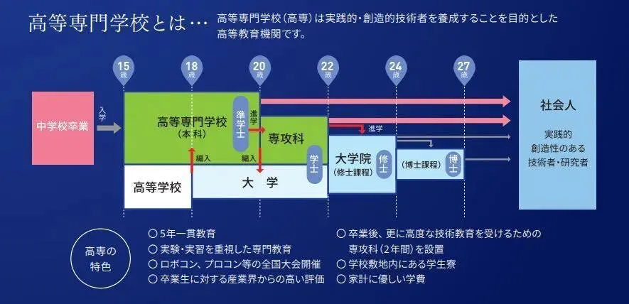 本校は、中学校卒業後の15歳の学生を受け入れ、5年間の教育を通じて、