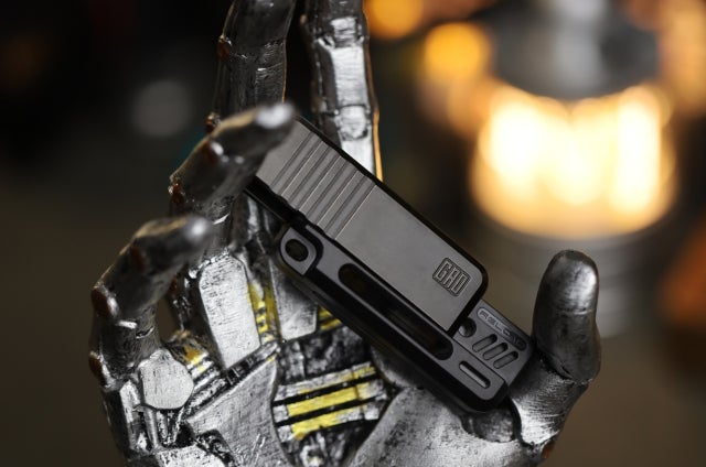 スライド部分を一番奥まで押し込むと、模擬撃発機構が作動し、ハンドガンを操作しているかのような撃発時の手応えを楽しめます。