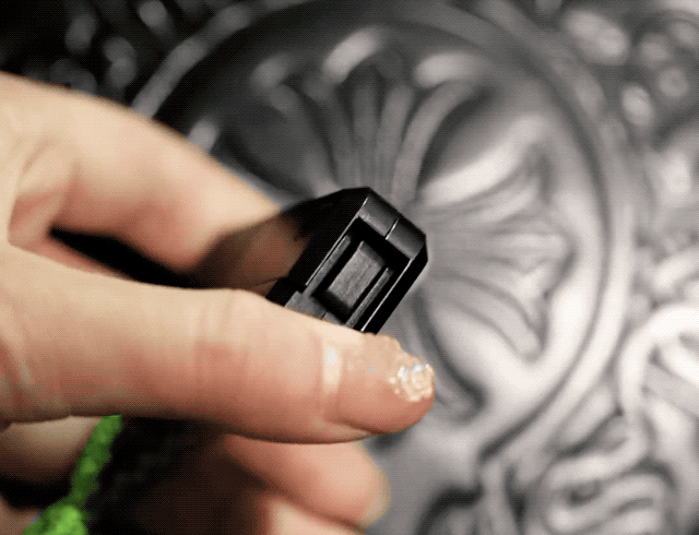 触り心地の良い2つの素材を使用し、まるでミニガンのようにしっかりと握ることができます。