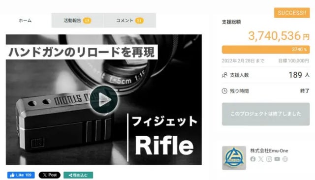 3年前、私たちはハンドガンのリロード動作をリアルに再現したフィジェットアイテム「無限リロード」をクラウドファンディングで公開しました。
