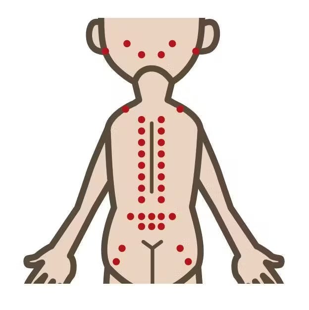 ツボとは、東洋医学の「気」の概念に基づく経絡(けいらく)上の経穴(けいけつ)で、全身に点在しています。
