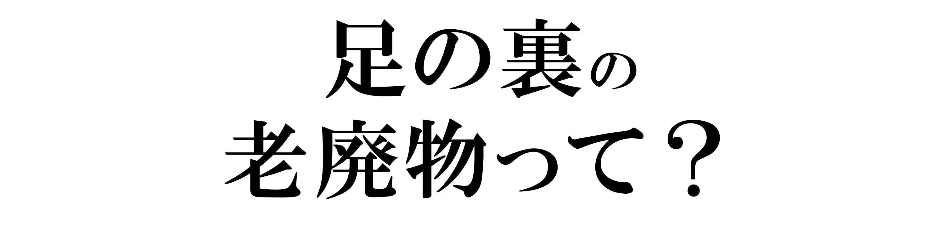 足の裏にたまりやすい「老廃物」・「代謝残留物」の正体は、アンモニア、リン酸、乳酸、炭酸/リン酸カルシウム(石灰沈着)、水素イオンなどの酸化性物質です。