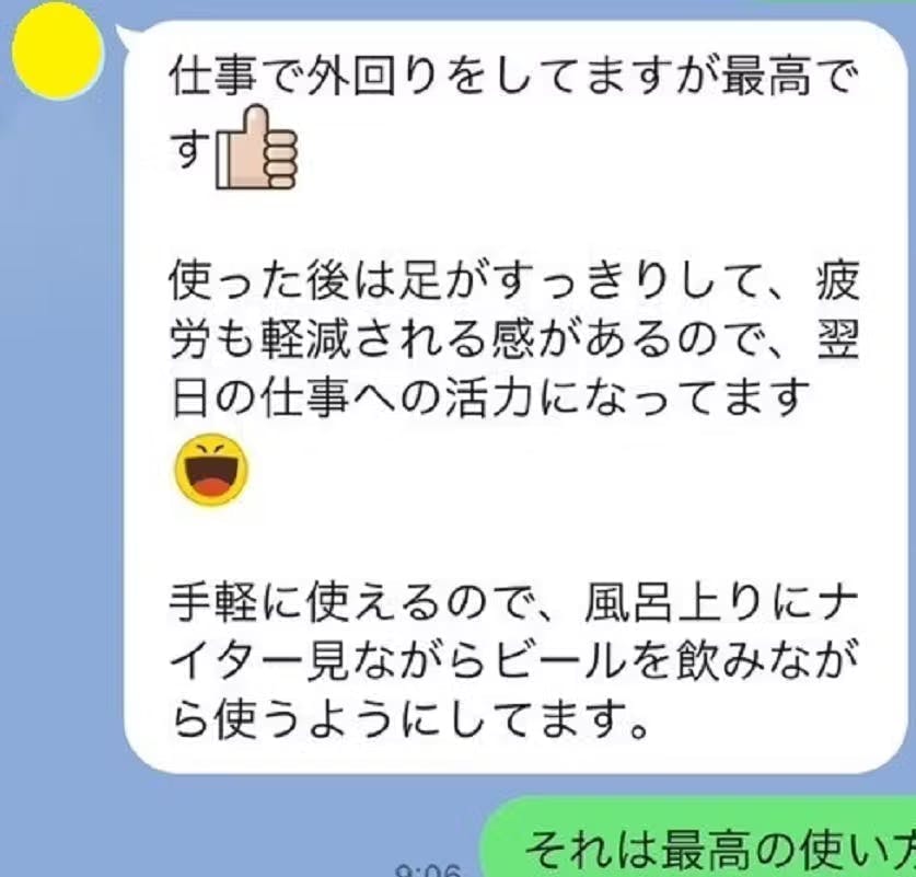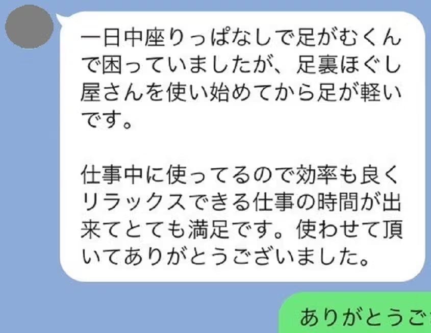 A: 効果の感じ方には個人差がありますが、多くのお客様は数回の使用でリラックス効果や血のめぐりが良くなったと実感されています。(※個人の感想です)継続して使用することで、より良い結果が期待できます。