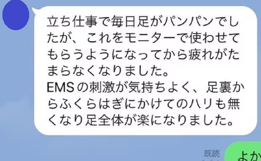 A: 足裏ほぐし屋さんはEMS(電気的筋肉刺激)技術を使用して、足裏にやさしく電流を流し筋肉を刺激します。これにより、筋肉がリズミカルに収縮とリラックスを繰り返し、めぐりを整え足の疲労感の緩和サポートし、ふくらはぎを和らげます。