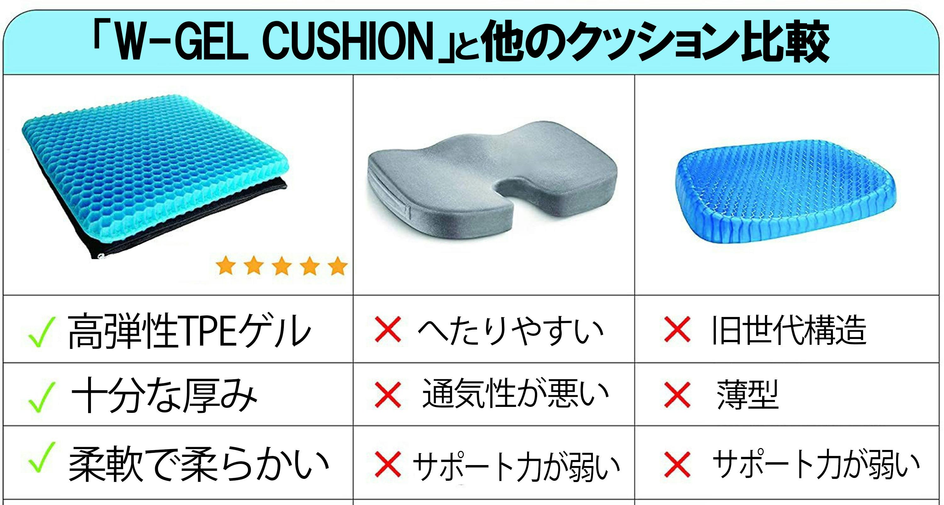 単層ゲルでは、どうしても「柔らかすぎる」「安定しない」と感じやすかった部分も、上層と下層それぞれに役割を持たせることで、衝撃吸収と体圧分散をバランスよく両立。