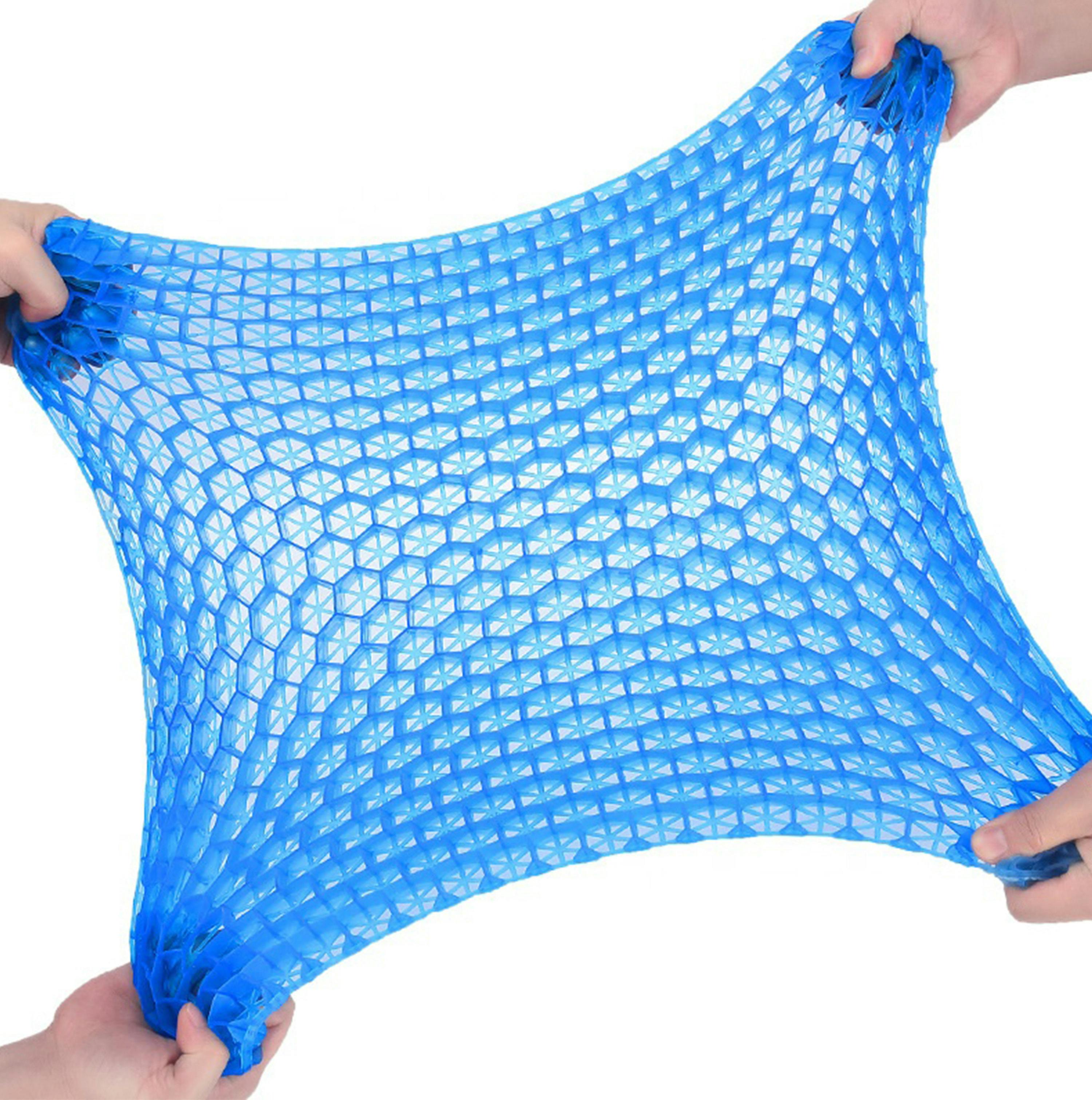 無数に配置されたハニカムホールが、座ったときにクッション内部へ空気の通り道をしっかり確保。体重がかかっても通気経路を塞ぎにくく、座面にこもりがちな熱や湿気を効率よく逃がす設計です。