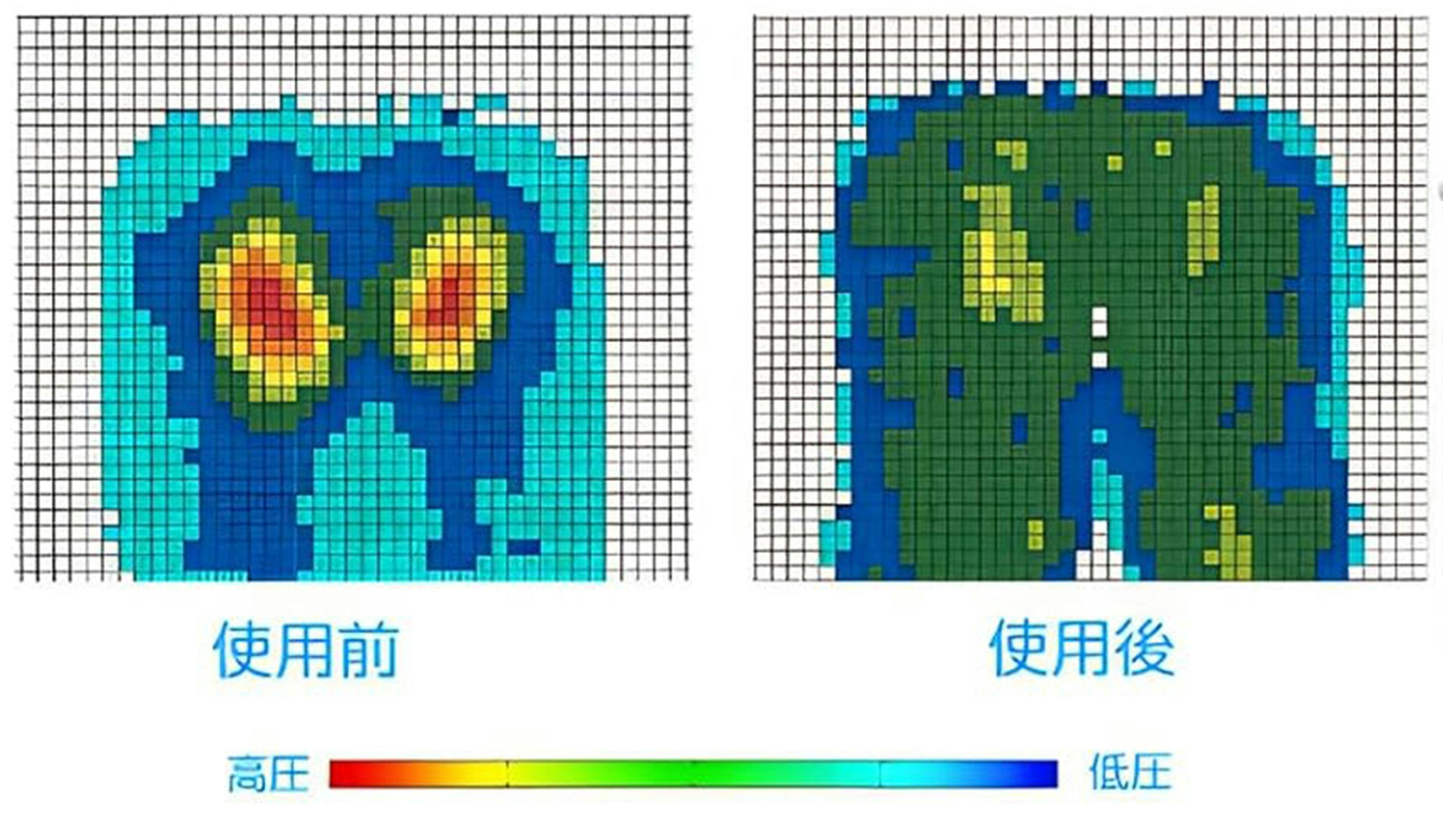 また、車いすでの使用や、日常的に座る時間が長い方にも配慮した設計。妊娠中で座り姿勢に気を遣いたい方や、ご高齢の方の日常生活のサポートとしても選ばれています。