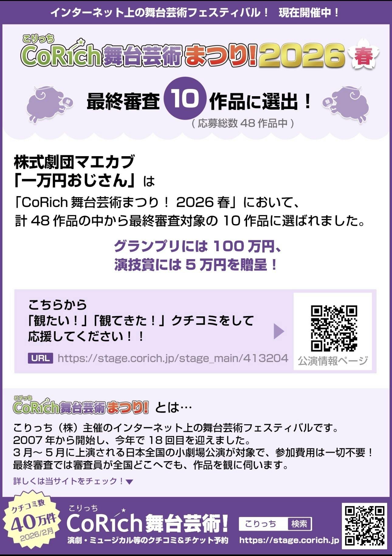 絵本劇場カメレオンのこけら落とし公演、一万円おじさんが、CoRich舞台芸術まつり 2026