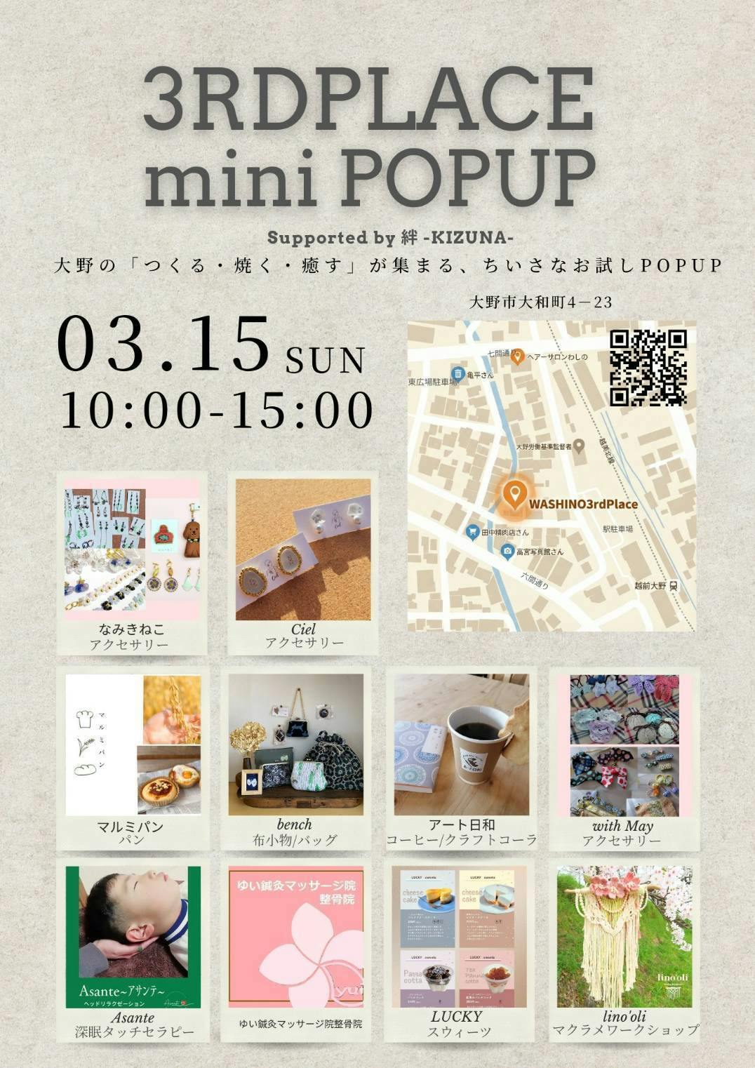 3/15(日)にWASHINO 3rd Placeさんで開催されるminiPOPUPイベントに、ハンドメイドユニット「なみきねこ」として出店させていただきます!