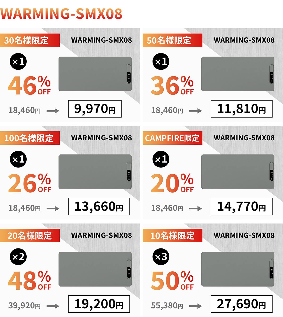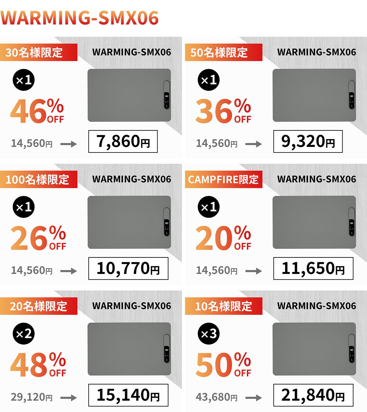 2026/03/02 11:10支援者の皆様お世話になっております。2月28日をもちまして、「電熱保温マット」プロジェクトは無事に終了いたしました。最終結果は 330,700円 のご支援をいただき、支援してくださった一人ひとりの皆さまのおかげです。「キャンプでも家庭でも、すぐに温まる」——そんな新しい体験を届けたいという想いに共感いただき、温かいご支援と熱いメッセージを賜り、心より感謝申し上げます。【今後のスケジュールについて】現在、製品の量産準備を進めております。今後の主なスケジュールは以下の通りです:・生産開始 3月・生産終了 4月・運送開始 5月・運送終了 5月※遅くも5月31日にお届け完了予定です。※生産状況によっては予定のスケジュールより早く出荷する場合がございます。進捗があり次第、活動報告にてご連絡いたします。引き続き、製品の完成とお届けまで、最後の最後まで責任を持って進めてまいります。改めまして、このたびは本当にありがとうございました!今後ともよろしくお願いいたします。シンズ・ストア もっと見る【本日23:59で終了】ラストチャンス!