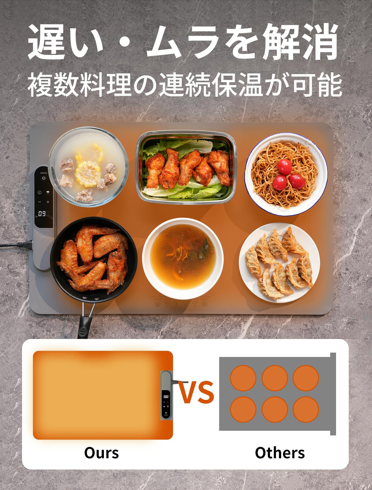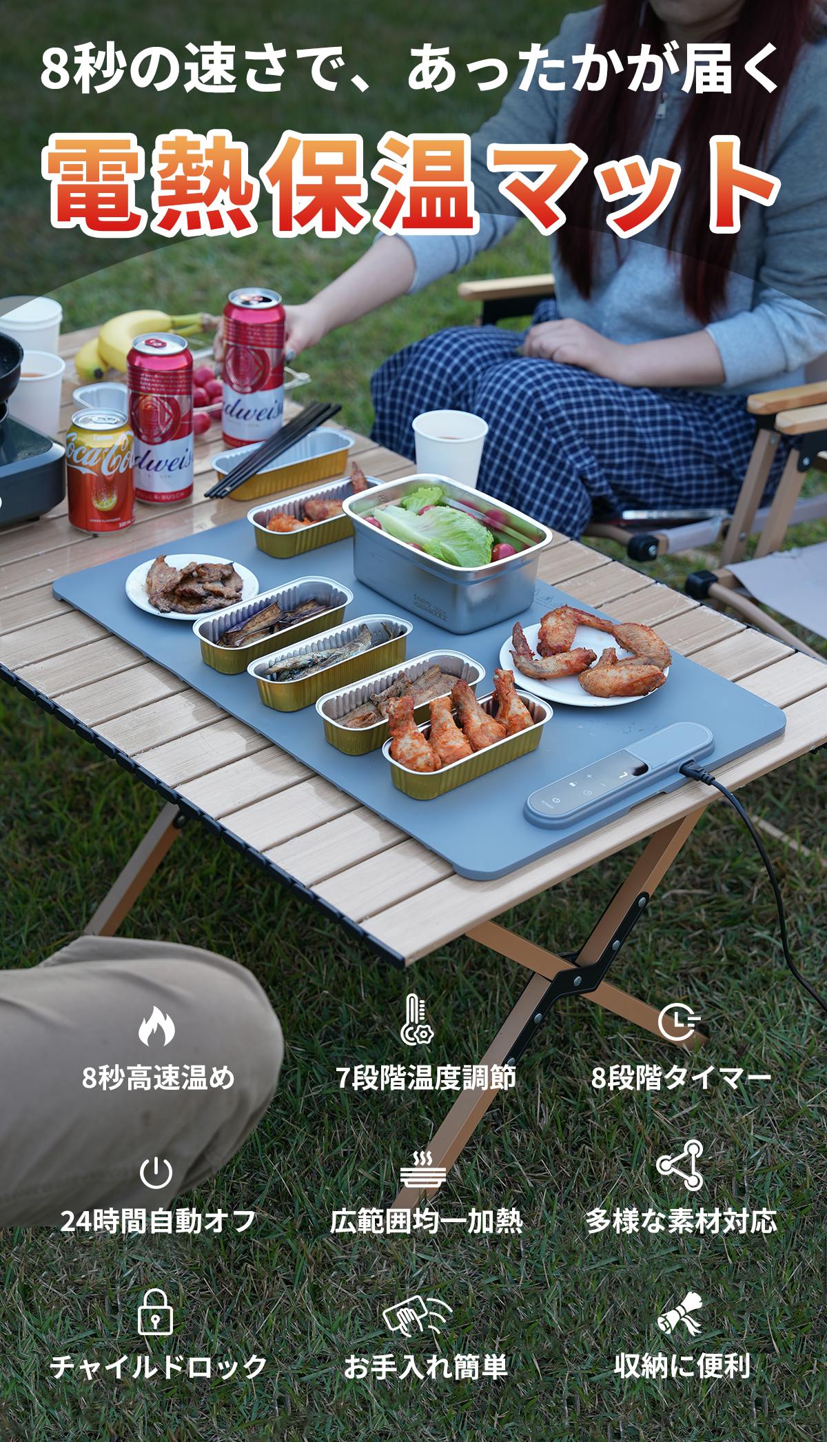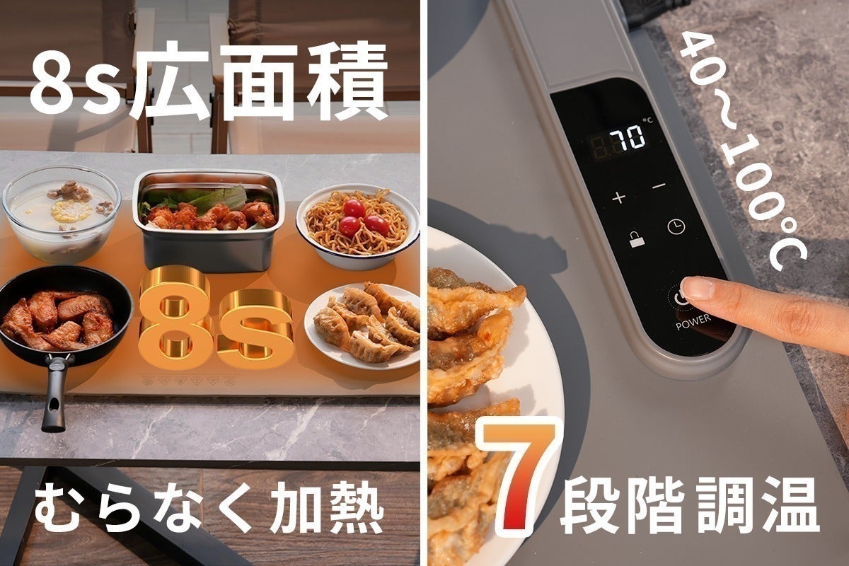 電源を入れてから、実用的な保温温度(約60℃)に到達するまで、わずか約8秒。キャンプで料理が冷めてしまった時、家庭で急いで朝食を温めたい時でも、「温まるのを待つ」というストレスから解放されます。