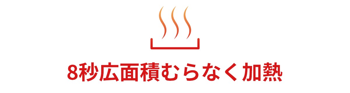 従来品のよくある局部加熱とは異なり、マット全体が約8秒で同時に、均一に発熱。大きいお皿やフライパン全体を載せても、端々まで同じ加熱効率を実現し、食材の「一部分だけ冷たい」という失敗をなくします。