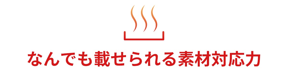金属(ステンレス、フライパン)、ガラス、陶器、ホーロー、アルミトレー、紙製のピザ箱など、熱に強い多様な容器を直接載せて使用可能。素材を気にせず、お気に入りの食器でそのまま温めや提供ができます。