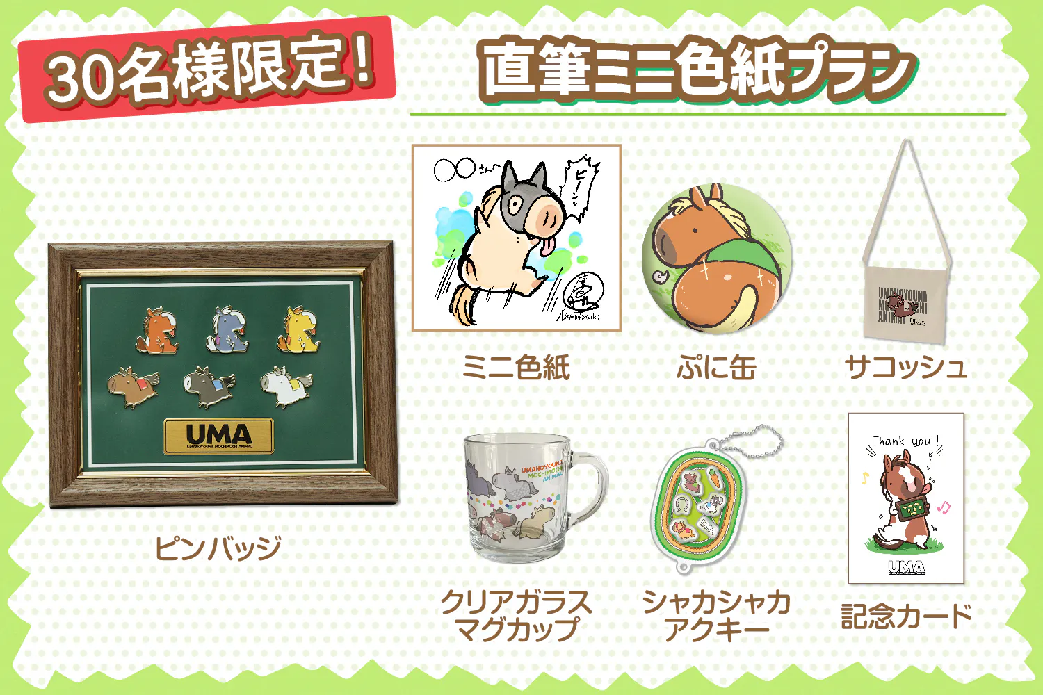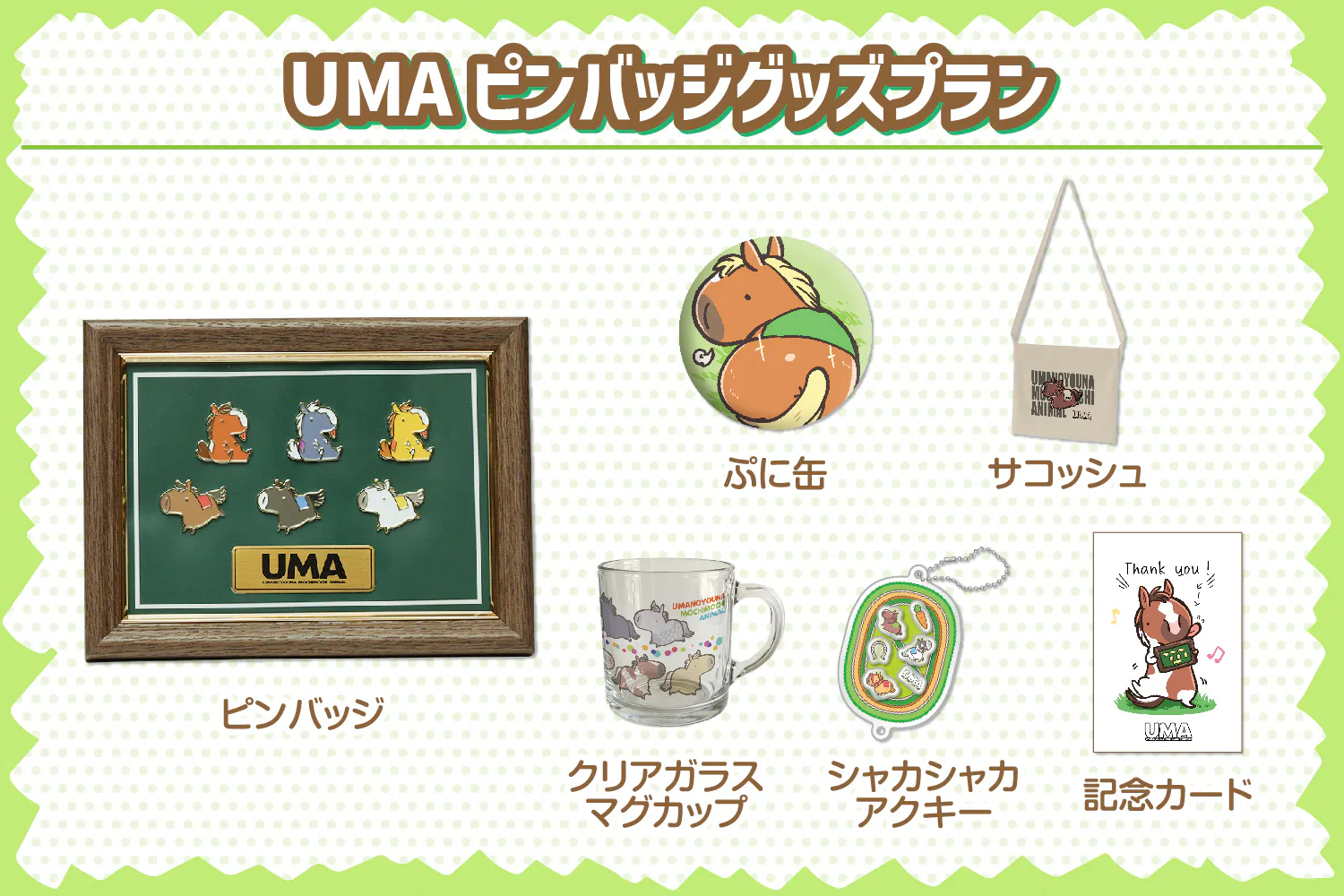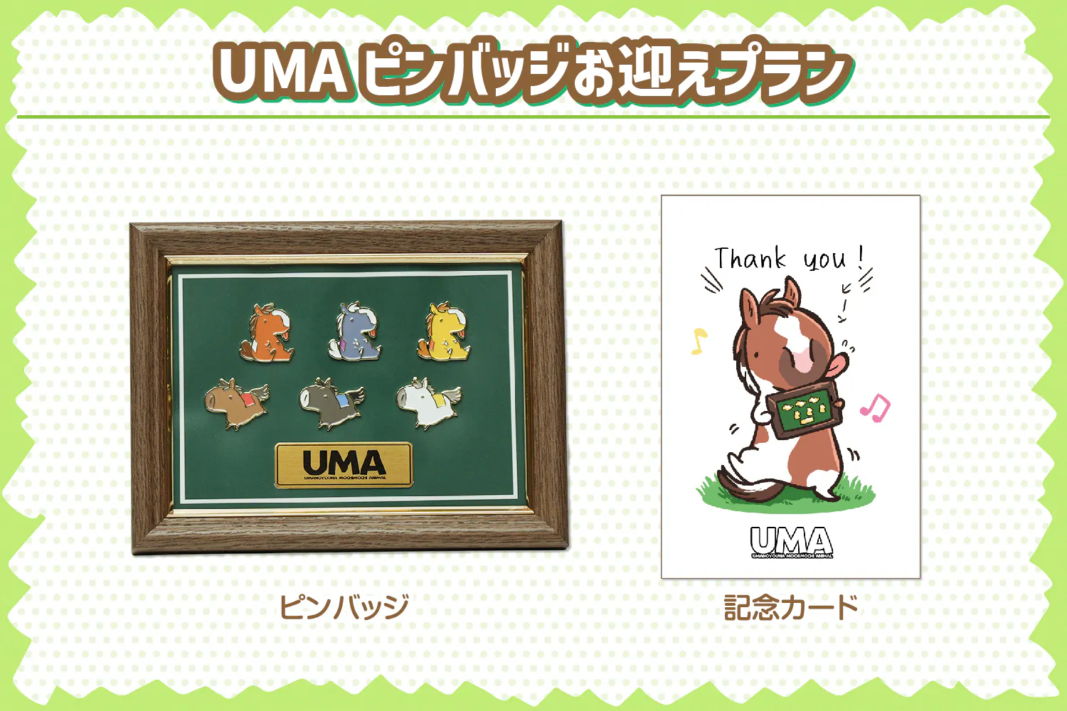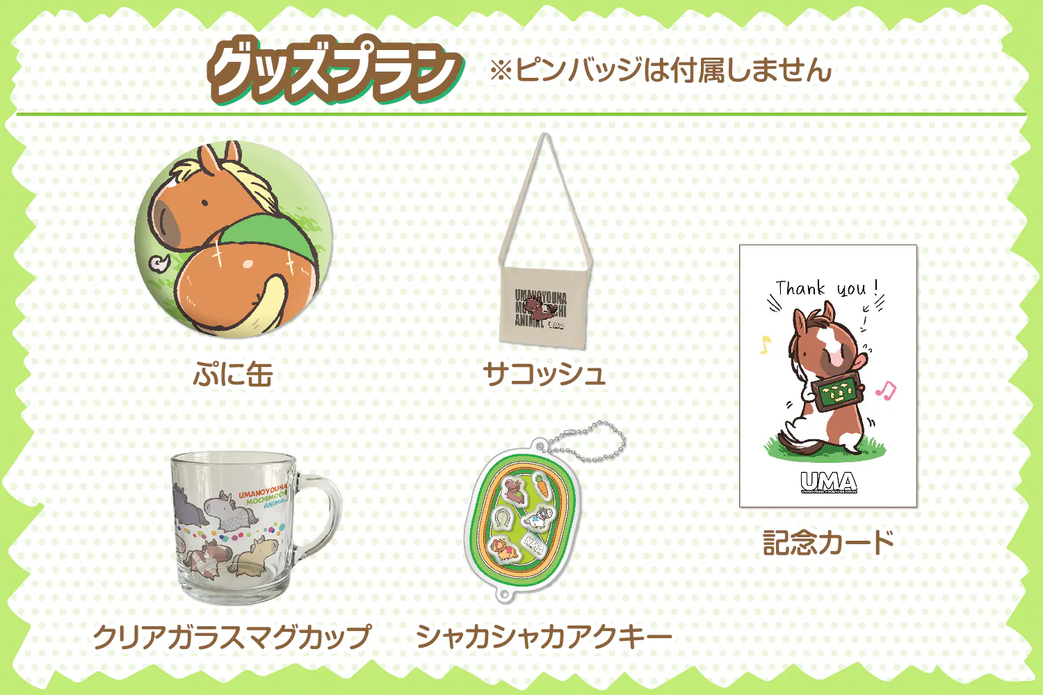 UMAピンバッジとグッズが揃うプランです!