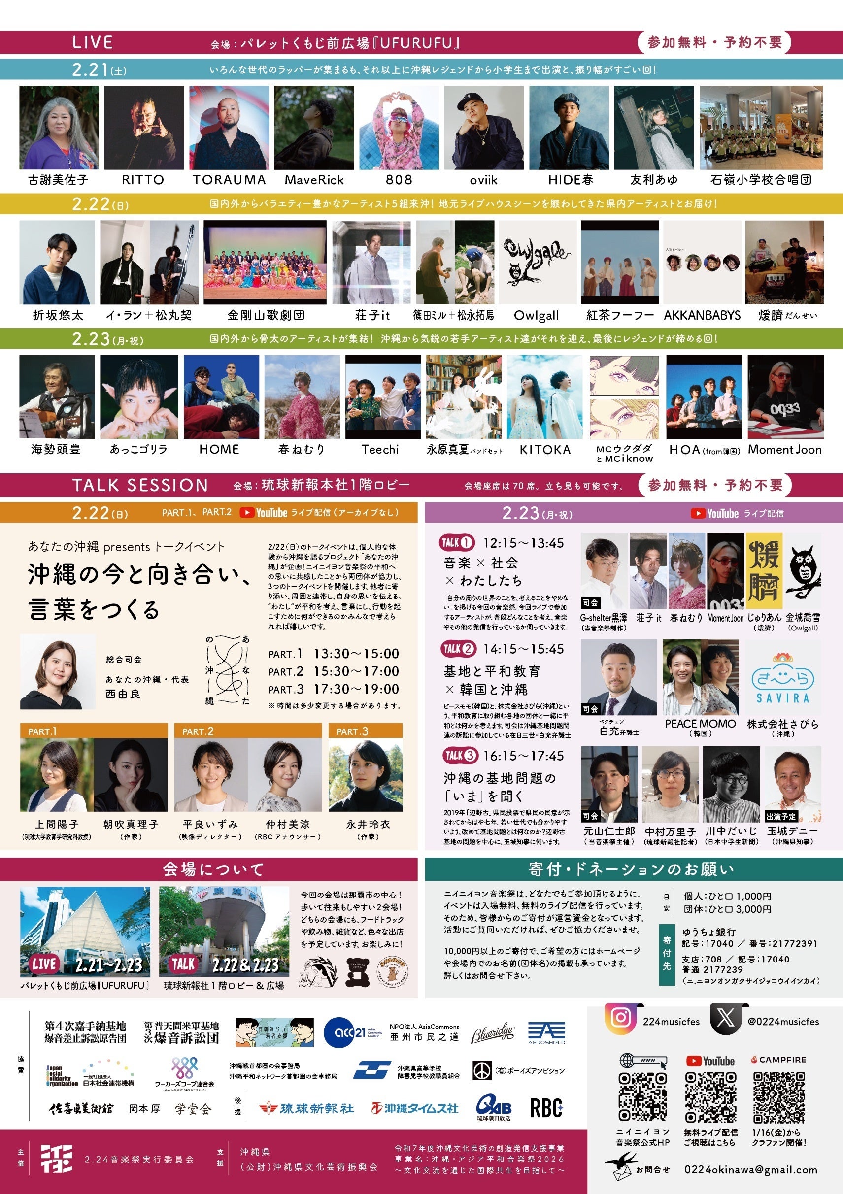 【ニイニイヨン音楽祭2026公式HP】https://www.224okinawa.org/