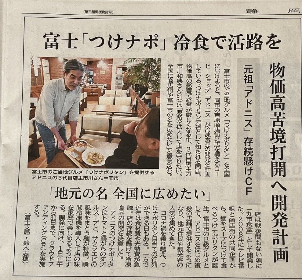 長年吉原商店街で続いてきたアドニス、そして「元祖つけナポリタン」の歩みが、こうして多くの方に届いていることをとても嬉しく思います。