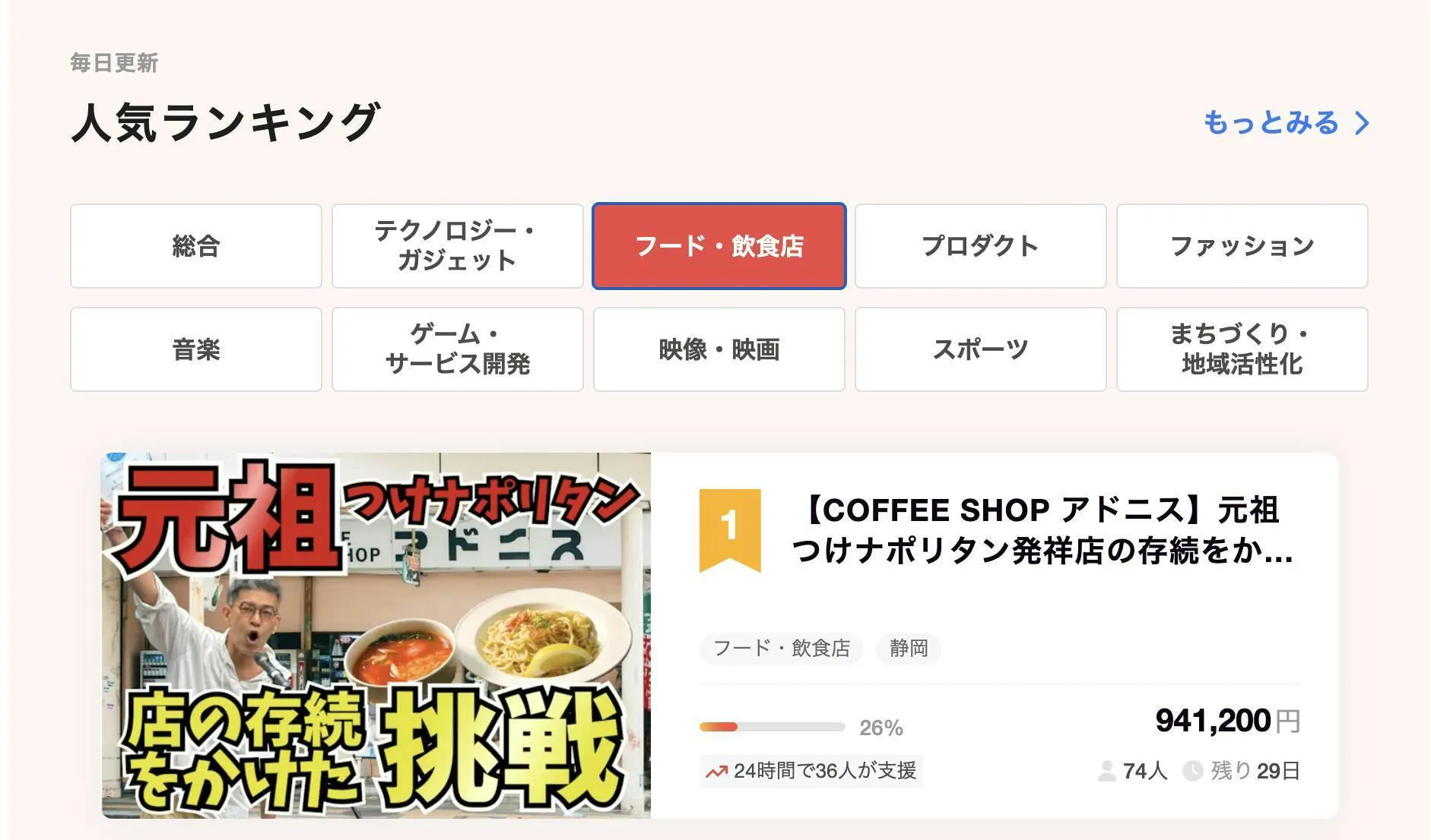 公開初日を終え、フード部門1位・総合2位(1/2 17:00時点)という結果でスタートを切ることができました。