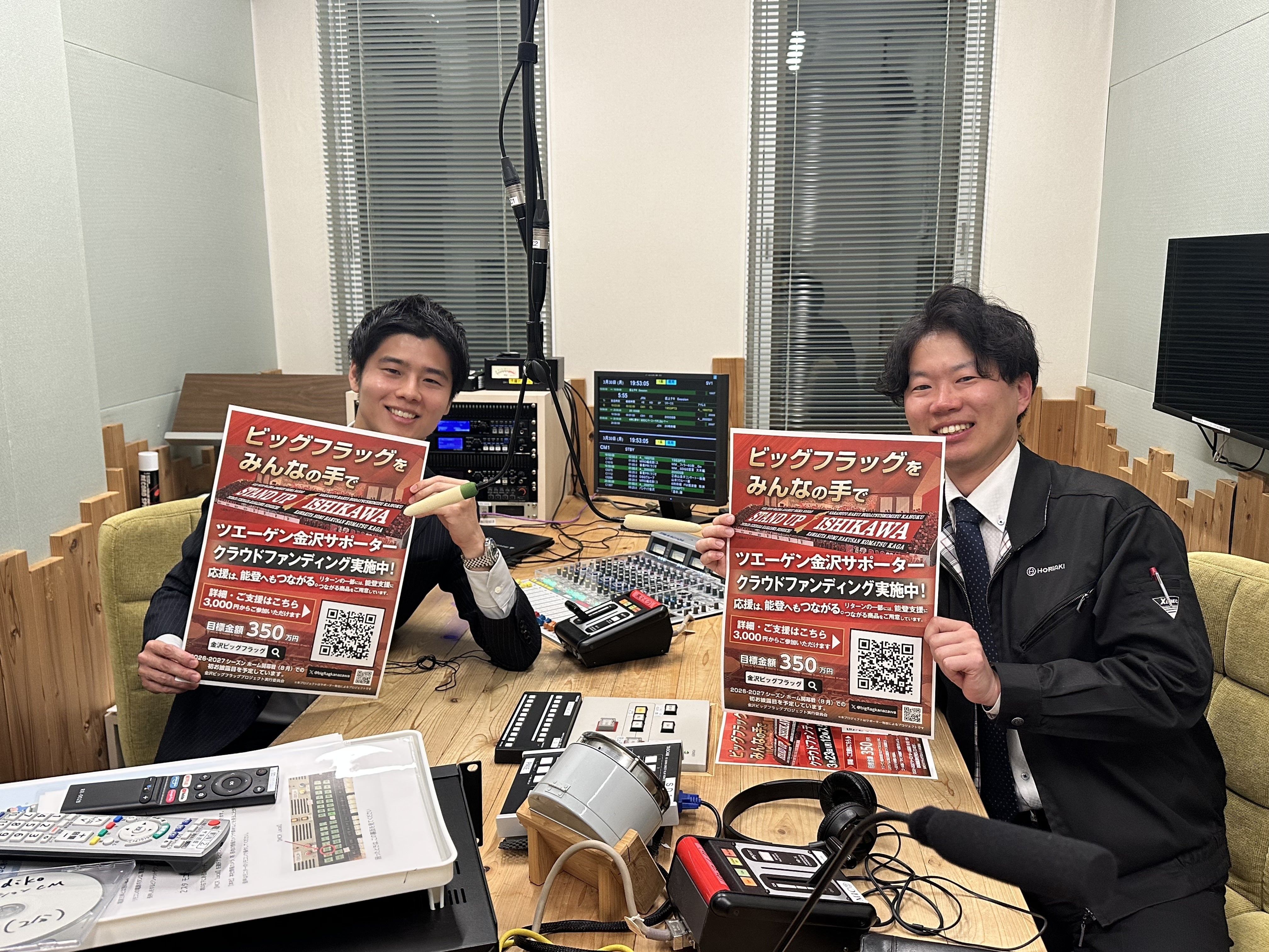 MROラジオ応援団長の牛田アナウンサーと前節の振返りとビッグフラッグプロジェクトについてお話させていただきました。