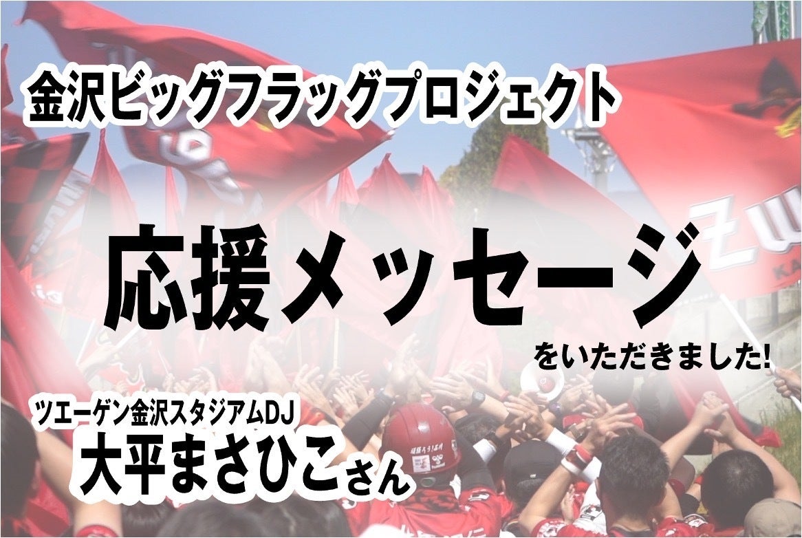 この度はなんとなんと!ツエーゲン金沢スタジアムDJでお馴染みの大平まさひこさんから応援メッセージをいただきました!