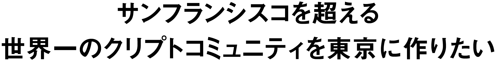 現状、法規制の問題などもありますが、ブロックチェーンの技術を応用した革命的なプロジェクトをどんどん生み出し、世界を代表する技術者の集まる場所といえば東京!そんなブロックチェーンの聖地を私たちは作りたいんです!