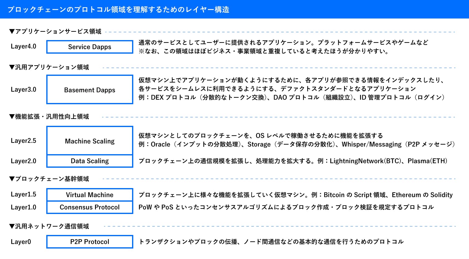▲株式会社GincoさんのGinco Magazineより、ブロックチェーンのトピックをレイヤーごとに分類した画像