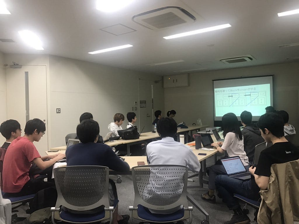 夏休み(8月、9月)が始まってからはブロックチェーンをレイヤーごとに分け、一番下のレイヤーから順に毎週月曜日に各レイヤーごとに勉強会を開催しております。
