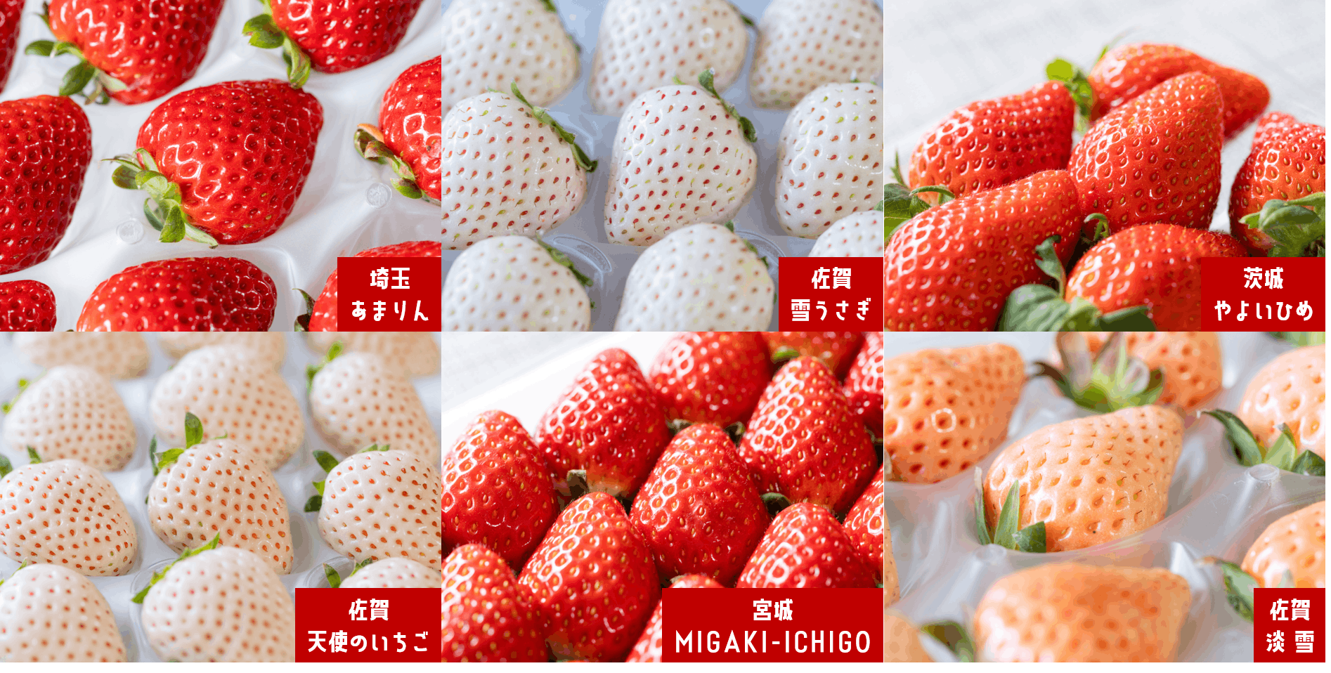 赤いイチゴに、ピンクのイチゴ、はたまた白いイチゴもみんなまとめて堪能できます!