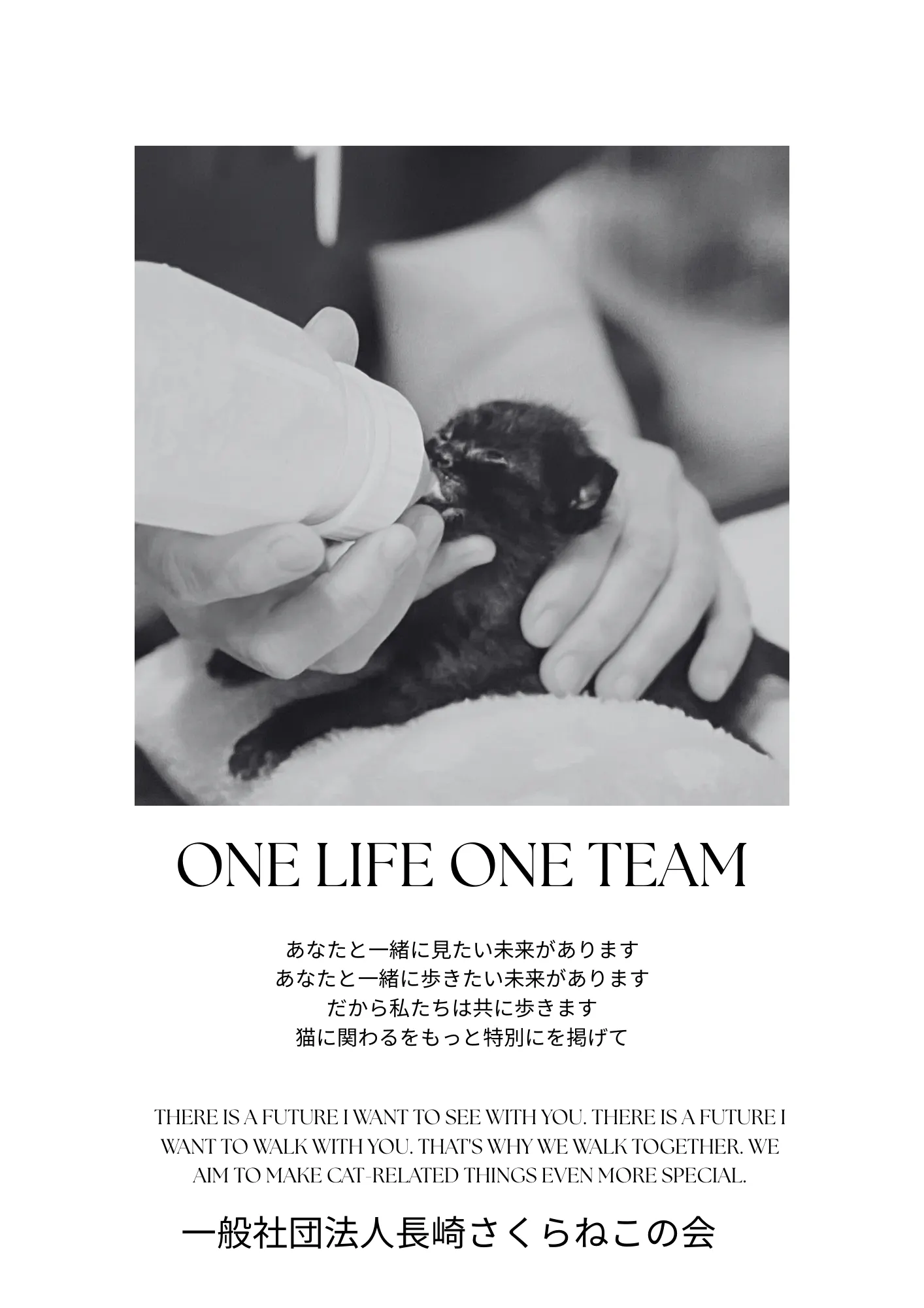 一般社団法人長崎さくらねこの会です。数ある沢山プロジェクトから我々のページをご覧いただき深く感謝致します。私たちは長崎市を中心に野良猫たちの命を救う活動を続けています。猫の街長崎で日々増え続ける野良猫たちに生きる道を探すため不妊去勢手術を行い、これ以上不幸な命が生まれることを防ぎながら、環境美化・環境保全を守り、野良猫の生きる道を皆さまとONE TEAMで手を取り合い小さな命を大切に守りたいと願っています。