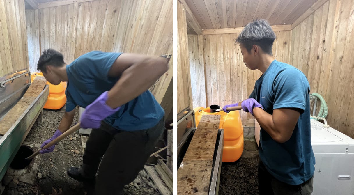 誰も、好んでし尿処理などをやりたいはずはありません。それでも自然の中で生きることを意味を理解し、キャンパーたちに少しでも清潔なトイレにしてあげようと、一生懸命し尿処理の処理の作業にあたってくれます。