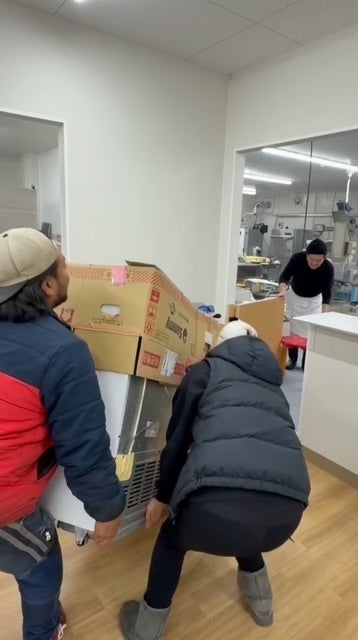 御菓子司 𠮷野家さんへ 自力で経済を回していくフェーズに入った輪島市では、徐々に仮設商店街や仮設店舗が開店し始めました。地震に続き豪雨災害にも見舞われ、営業を再開するのにも建物だけでなく、営業資材も必要です。輪島市町野で活動しておられる災害NGO結さんのご紹介で、私たちも製氷機と大型冷凍庫を輪島市町野で仮設商店街の開店準備をしておられるお店へお届けしました。
