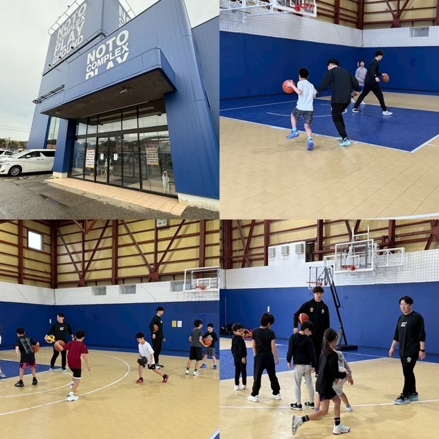 駐車場を挟んだNOTO COMPLEX PLAYGROUNDでは日本の男子プロバスケットボールのトップリーグであるBリーグに所属する「金沢サムライズ」のコーチ2名によるバスケクリニックを開催。