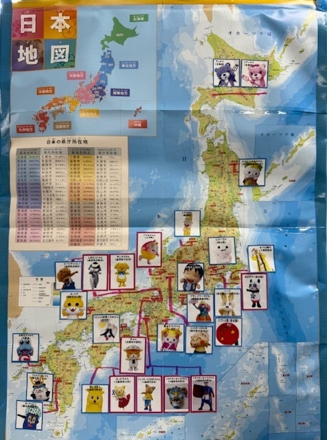 こちらは交野市観光協会の北川さんが作ってくれた輪島なかよしキャラバンに参加してくれたご当地キャラさんたちの日本地図。