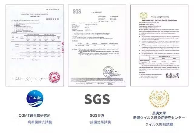 -検査実施時期:SGS台湾2020年5月26日、CGMT微生物研究所2020年6月28日、長庚大学新興ウイルス感染症研究センター2021年1月1日〜1月31日、
