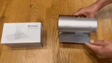 【Smini】は置く場所に困らず持ち運びに便利なコンパクトボディながら、強力パワーでキレイな空気を放出。大きさは500mlのビール缶と同程度。