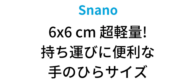 縦横6×6cm、高さ3cmと手のひらサイズ。重量もわずか80g!