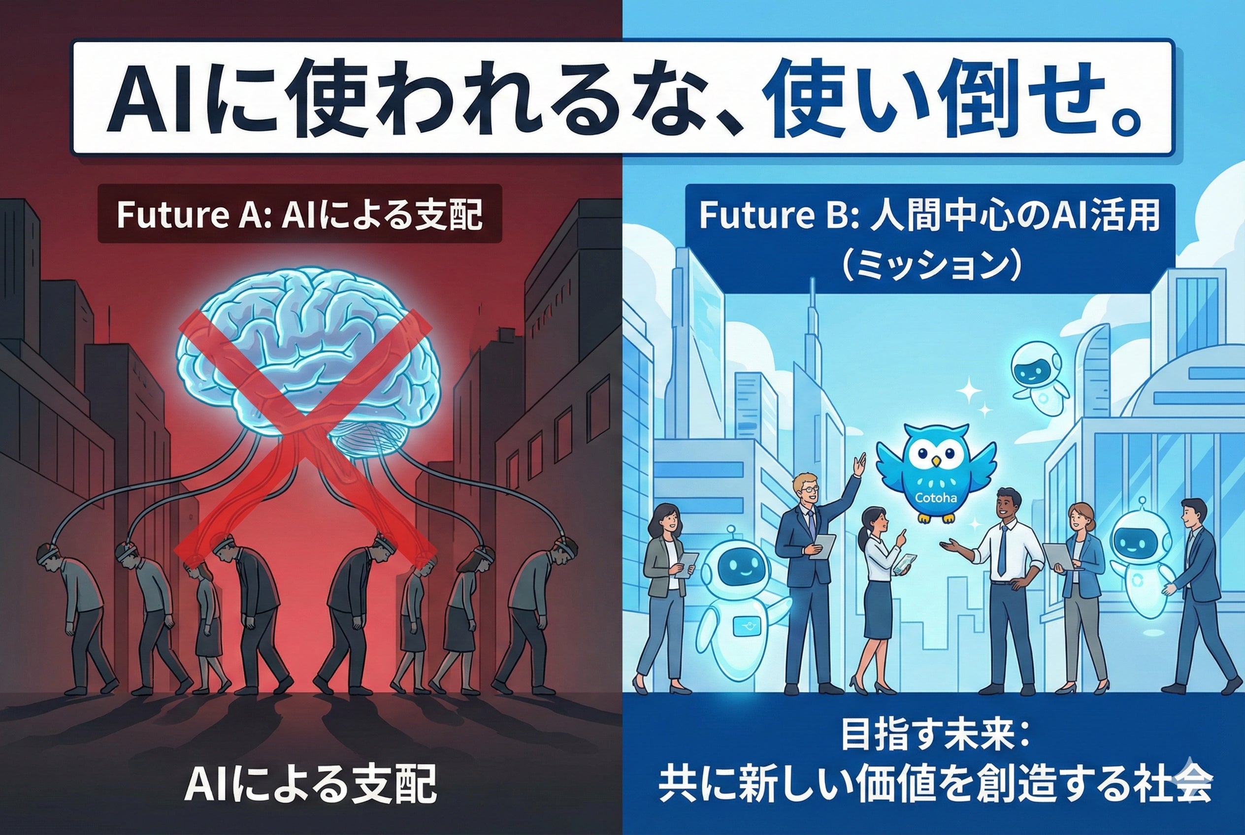 目指す未来(Future B):AIが人間を支配するのではなく、人間がAIを道具として使いこなし、共に新しい価値を創造する社会。