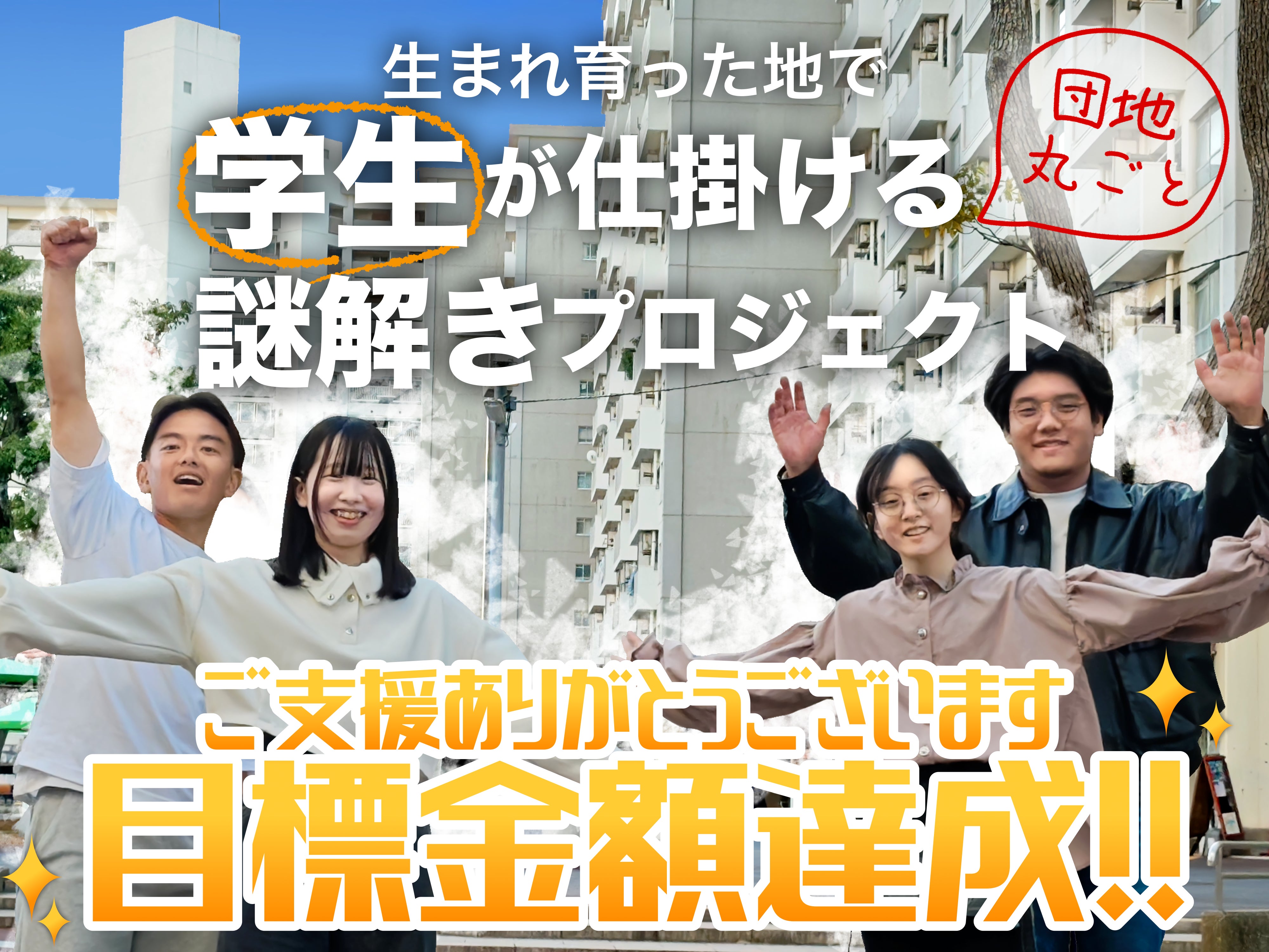 2026/04/06 13:00こんにちは!「幻の9号棟からの脱出」クラファン担当のたいようです。みなさま、「団地が“冒険の舞台”に。学生が仕掛ける、団地まるごと謎解きプロジェクト!」プロジェクトページを見ていただき、誠にありがとうございます。本プロジェクトは昨日までに、支援者数51名、計365,000円(達成率91%)のご支援をいただいております。51名の支援者の皆様、ありがとうございます。支援の輪が、少しずつ広がっているのを実感しております。ついに、今回のイベント限定Tシャツのデザインが完成いたしました!!Tシャツ支援の枠は、残り3枠となっております。皆様のご支援が、子どもたちの思い出に代わります。引き続き、皆様のご支援をよろしくお願いいたします。 もっと見る