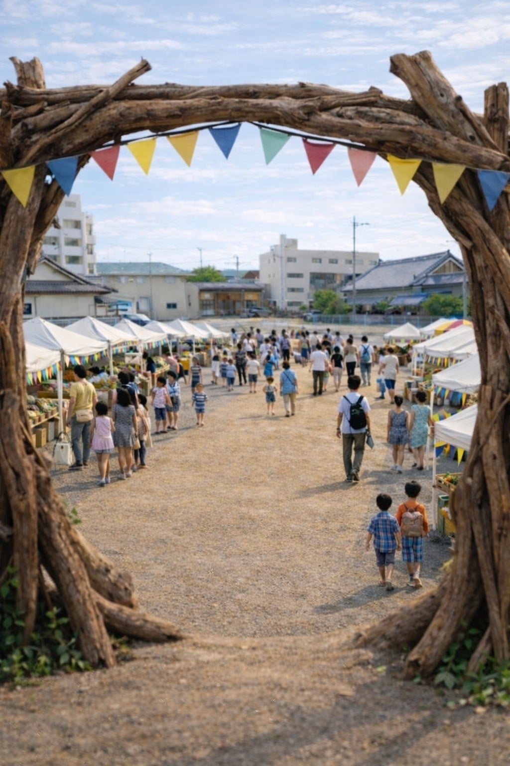 流木ゲートやガーランドで古い町並みを装飾します!