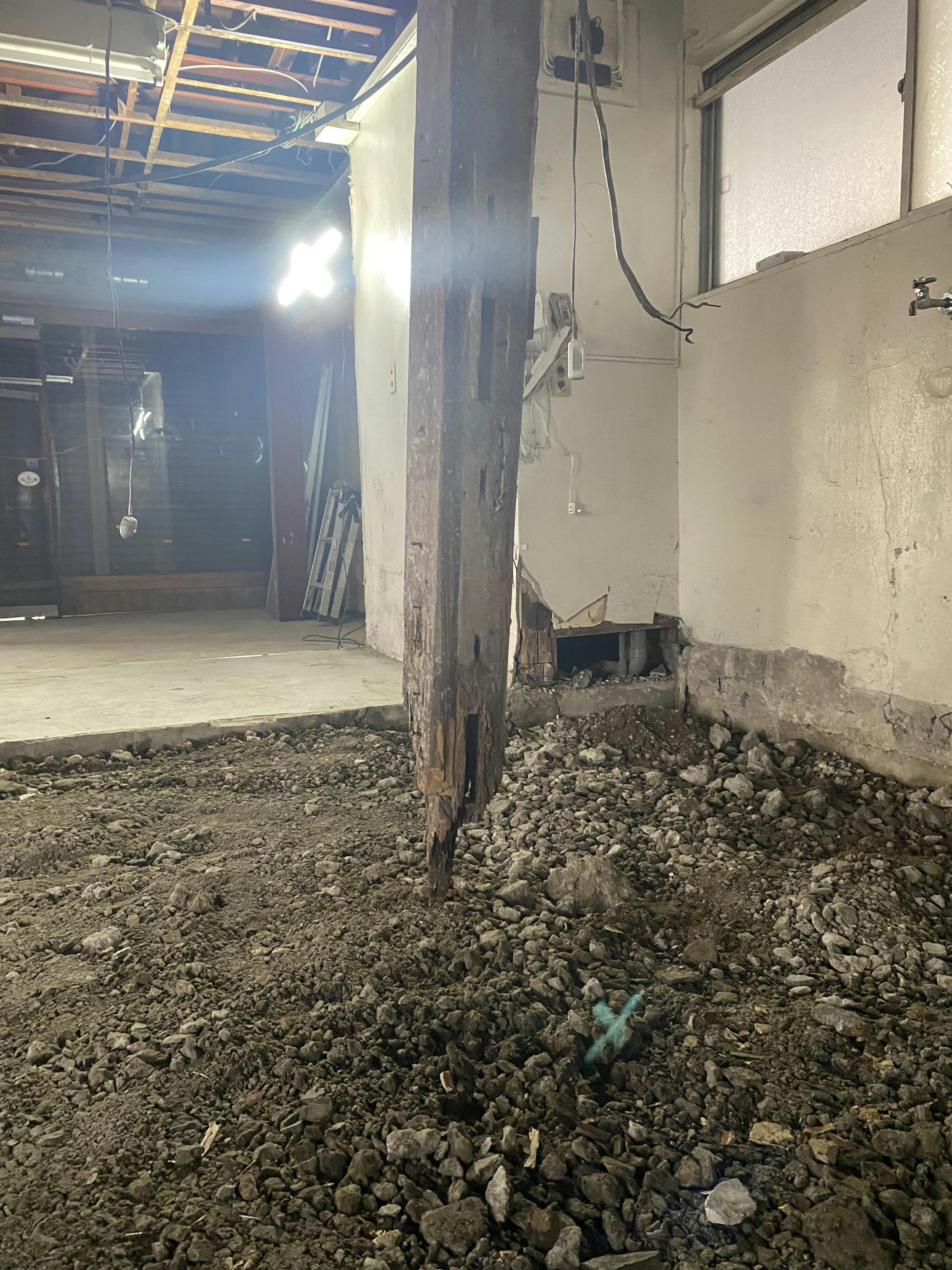 なんということでしょう・・・これは一大事・・・内装の前に基礎部分を全面的に見直す(イチから作り直し?)する必要がでてきております。