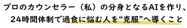 だからこそ私は、出版の次のステップとして、私の分身となり24時間過食に悩み続ける方々を支え続ける「AI」の開発を決意しました。