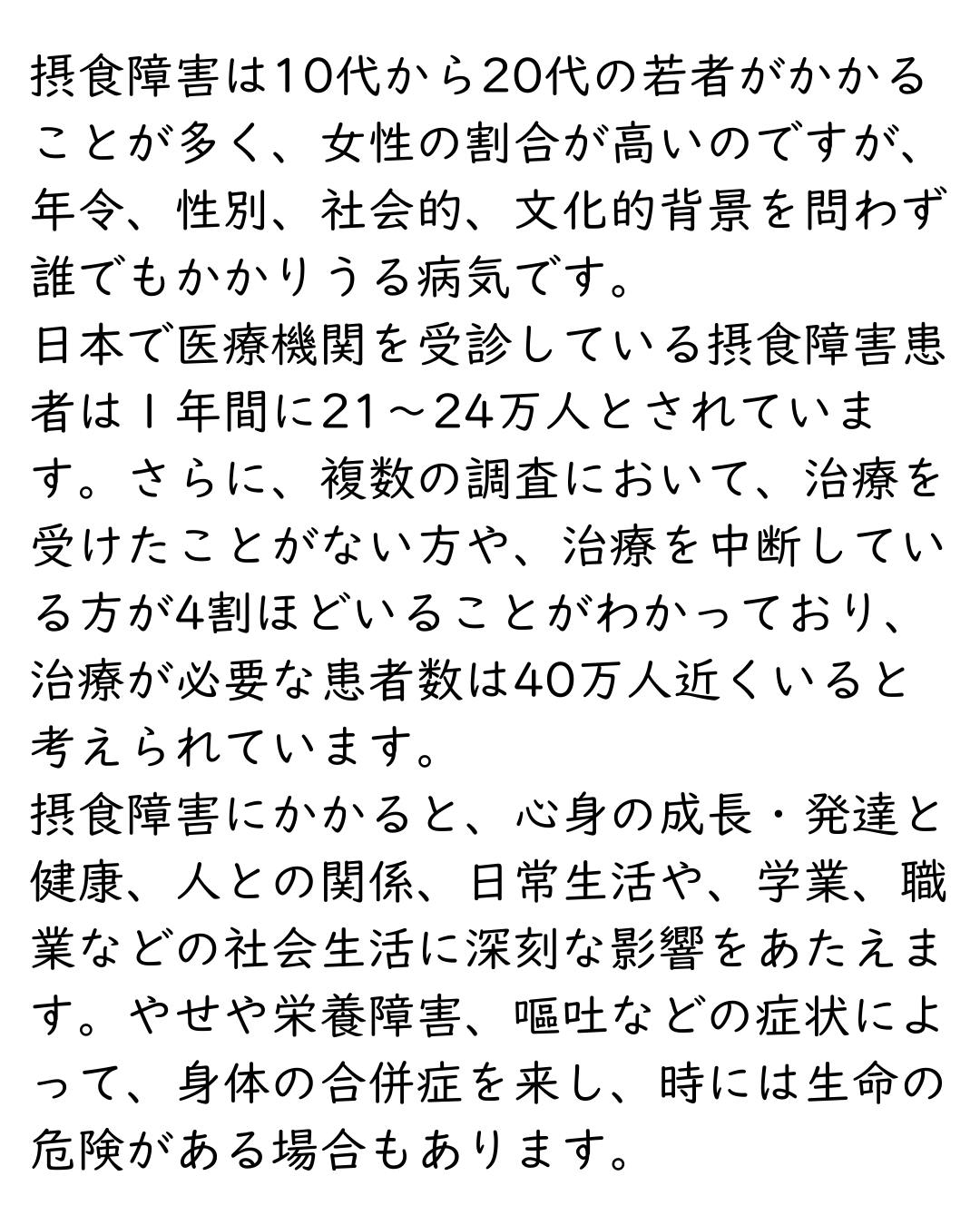 摂食障害は、孤独な病気です。