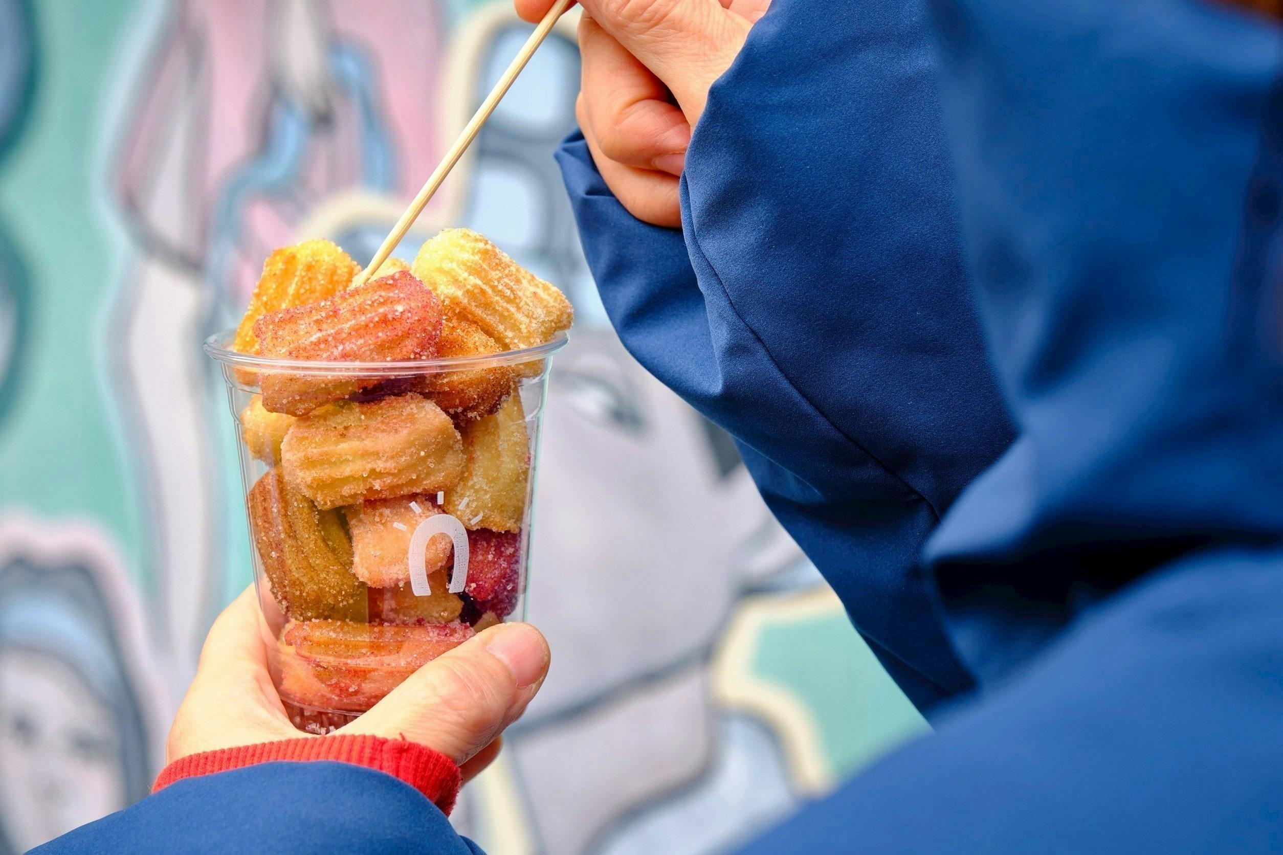 可愛らしい一口サイズのチュロスは、原宿の街を歩きながら楽しむのにぴったり。