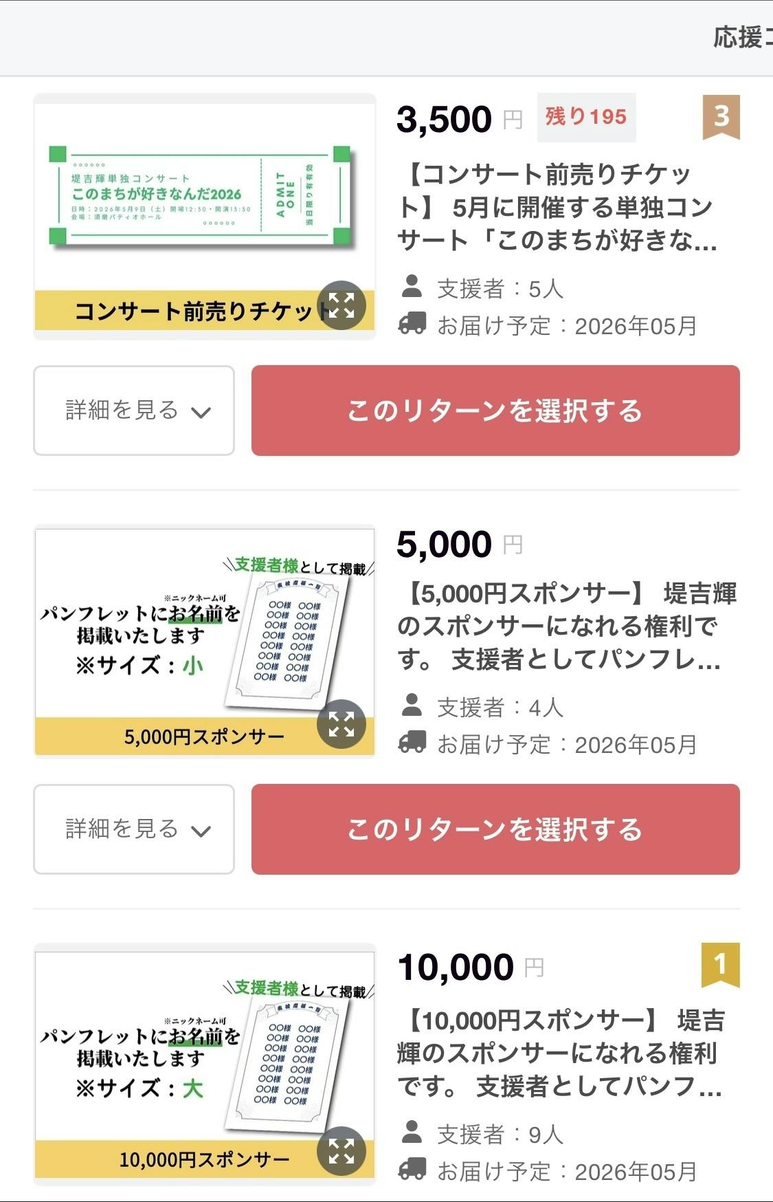 ※スポンサーにはコンサートチケットは付いておらず、「コンサート前売りチケット」のリターンをご購入のほどお願いいたします。