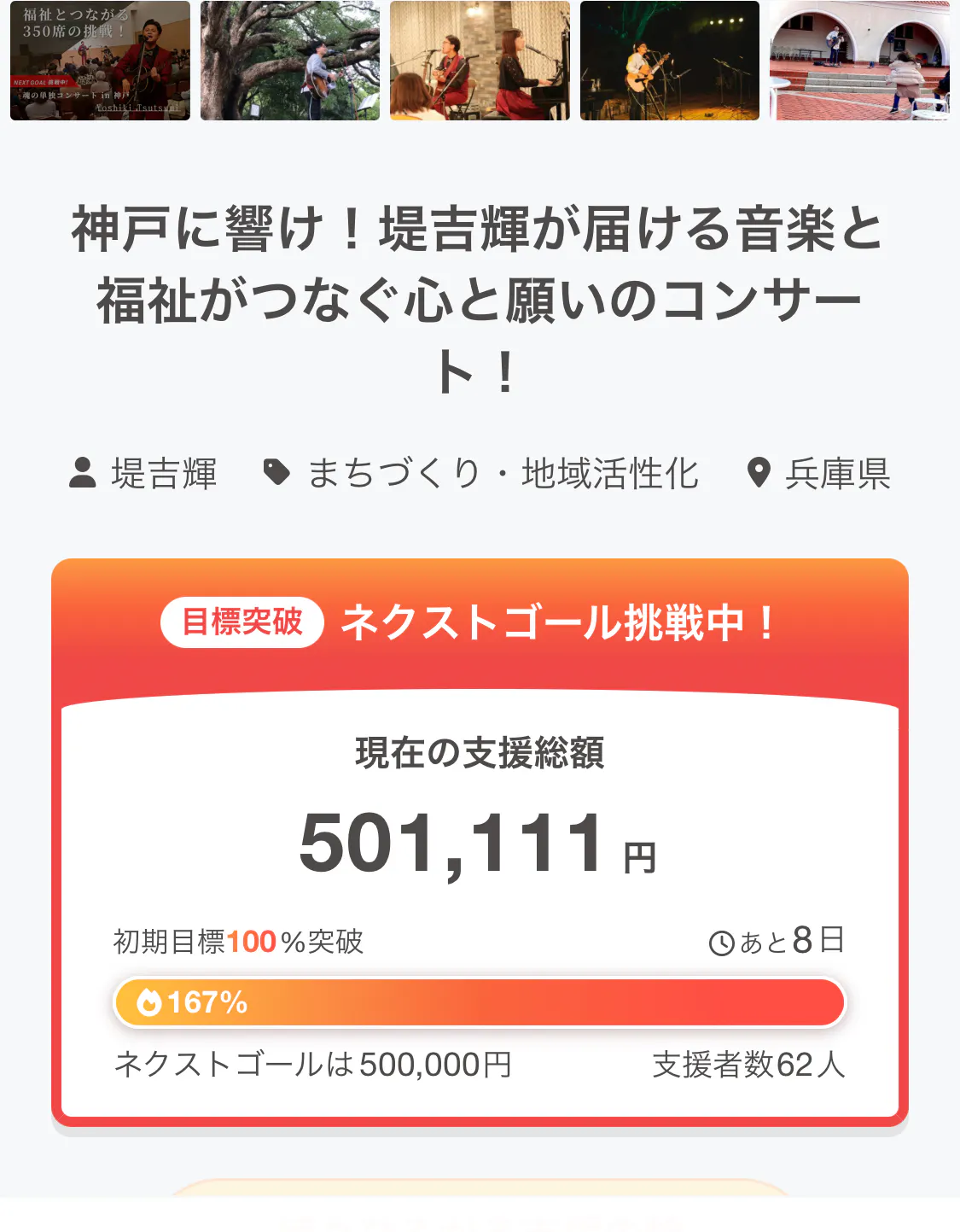 2026/03/23 08:43【残り8日】今朝起きてクラファンのページを開いたら…目標達成していました。寝起きの僕には一瞬理解できませんでした。笑本当にありがとうございます!そして、クラファン以外でもご支援くださった方が沢山おられます。皆さんのおかげでここまで来ることができました。本当に感謝です。クラウドファンディングはまだ残り8日あります。この挑戦と、5/9のコンサートをもっと多くの方に届けられるよう最後まで走り続けます。引き続き応援よろしくお願いいたします!━━━━━━━━━━━━堤吉輝クラウドファンディングhttps://camp-fire.jp/projects/913500/view※スポンサー枠はチケット付きでは有りませんので、ご確認のほどお願いいたします。━━━━━━━━━━━━【このまちが好きなんだ2026】開催日:2026年5月9日(土)時間:開場12:30/開演13:30〜15:30会場:須磨パティオ健康館3Fサポート:茉実(ピアノ)/松田礼央(パーカッション)チケット:前売3,500円/当日4,000円━━━━━━━━━━━━ もっと見る