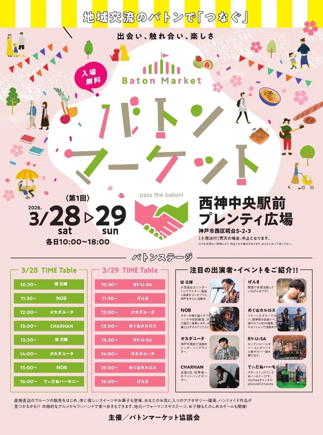 2026/03/27 11:43【クラファン残り4日】クラウドファンディング残り4日となりました!そして明日・明後日はフリーイベントで演奏させていただきます!実際に目の前で歌を届けて、その場で感じてもらえる時間になります。「どんなコンサートなんやろ?」そう思ってくださっている方はぜひ気軽に遊びに来てください⭐︎この時間が、5/9のコンサートに繋がるきっかけになれば嬉しいです。━━━━━━━━━━━━3/28(土)【地域交流イベント開催】「バトンマーケット」会場:西神中央駅前プレンティー広場入場無料出演時間10:30〜 / 13:30〜━━━━━━━━━━━━3/29(日)西武庫公園 さくら祭り 2026 会場:西武庫公園入場無料出演時間13:50〜14:30━━━━━━━━━━━━堤吉輝クラウドファンディングhttps://camp-fire.jp/projects/913500/view※スポンサー枠はチケット付きでは有りませんので、ご確認のほどお願いいたします。━━━━━━━━━━━━ もっと見る