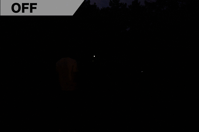 では、次に、遠いものを照らした場合はどうなるかみてみましょう。