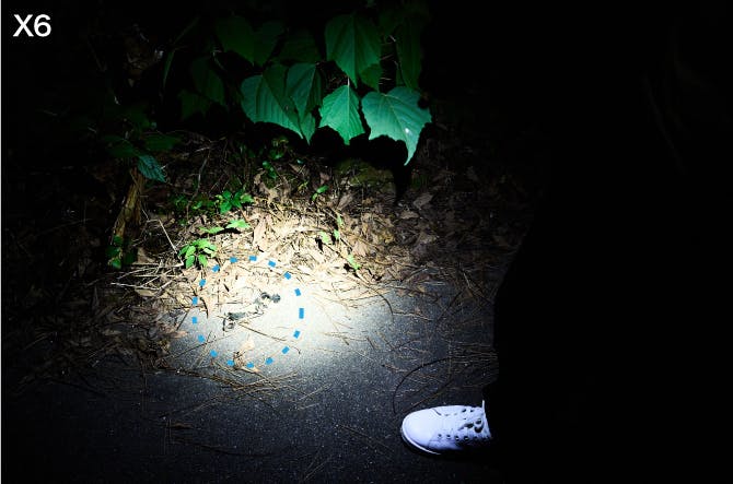 手軽なライトとして、近頃ではスマートフォンのライトを使用する方も増えていると思います。そこで、X6とスマートフォンのライトではどのような違いがあるかを検証しました。