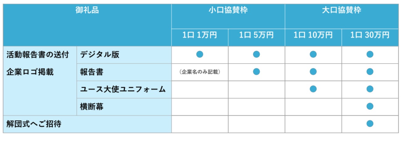 本事業は、世界中のユース国連大使が平和活動を実施し、その成果報告はニューヨークの国連施設にて実施されます。本事業を後援いただくことで、青少年育成・国際貢献活動を支援する企業イメージの定着に繋がります。